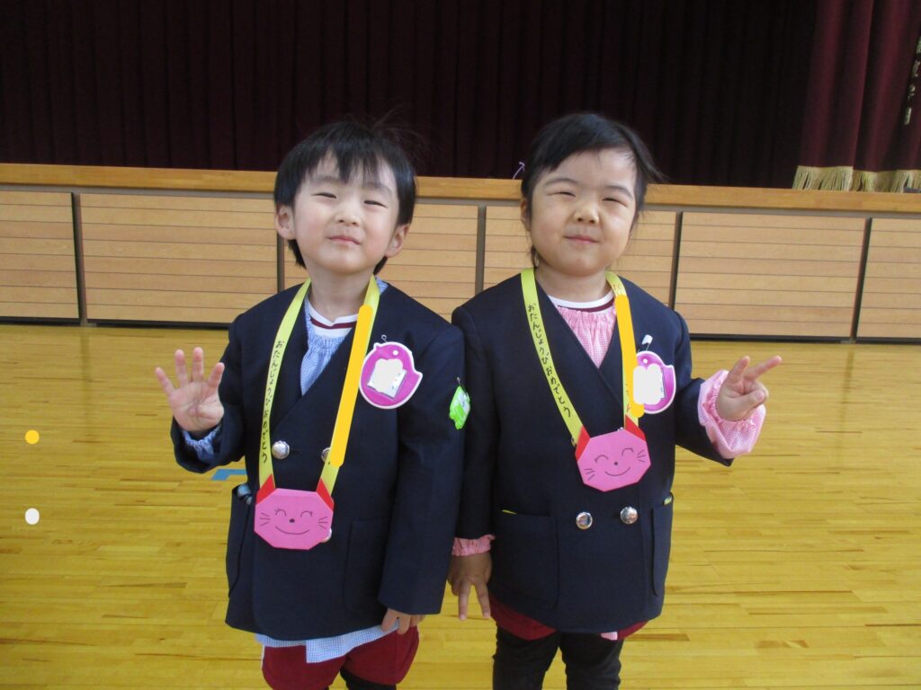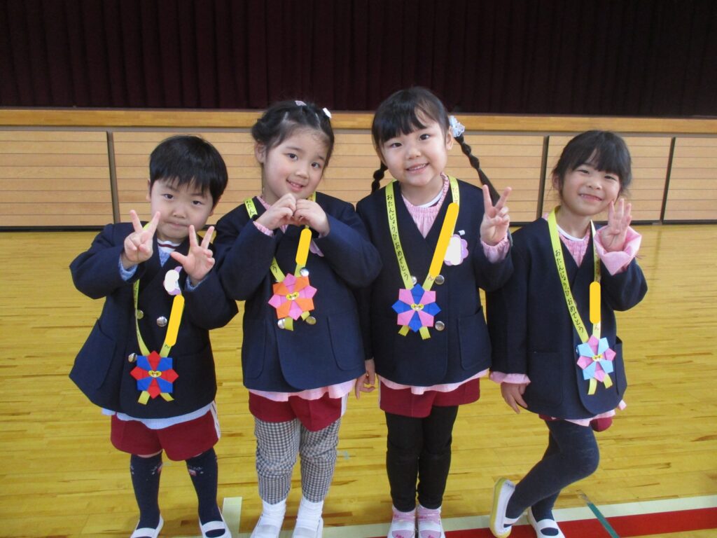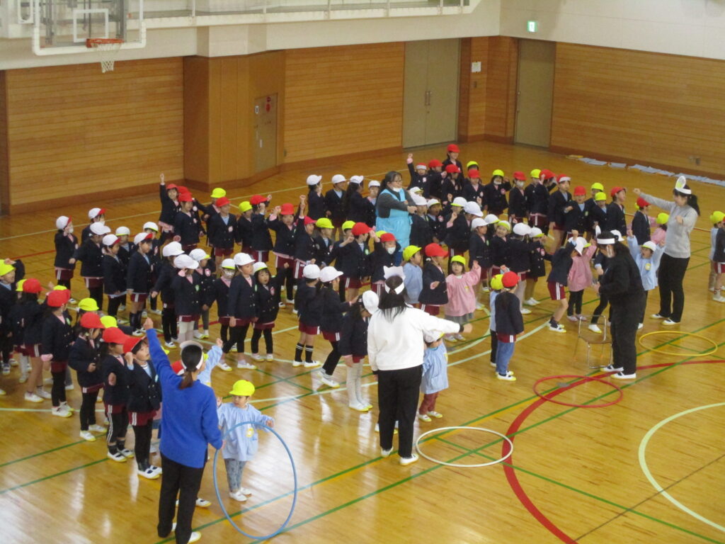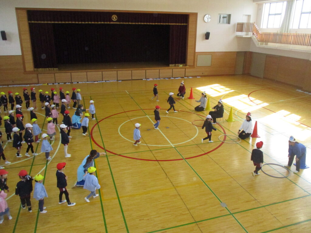 体育館に集まり、2月生まれのお友だちをお祝いしました。担任の先生から手づくりペンダントやかんむりを頂き、お友だちからはことばのプレゼントを頂きました🎉2月は、学年ミックスで5チームに分かれみんなでゲームをして遊びました🎵