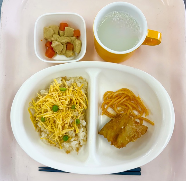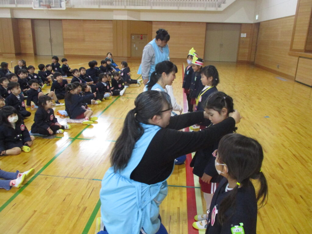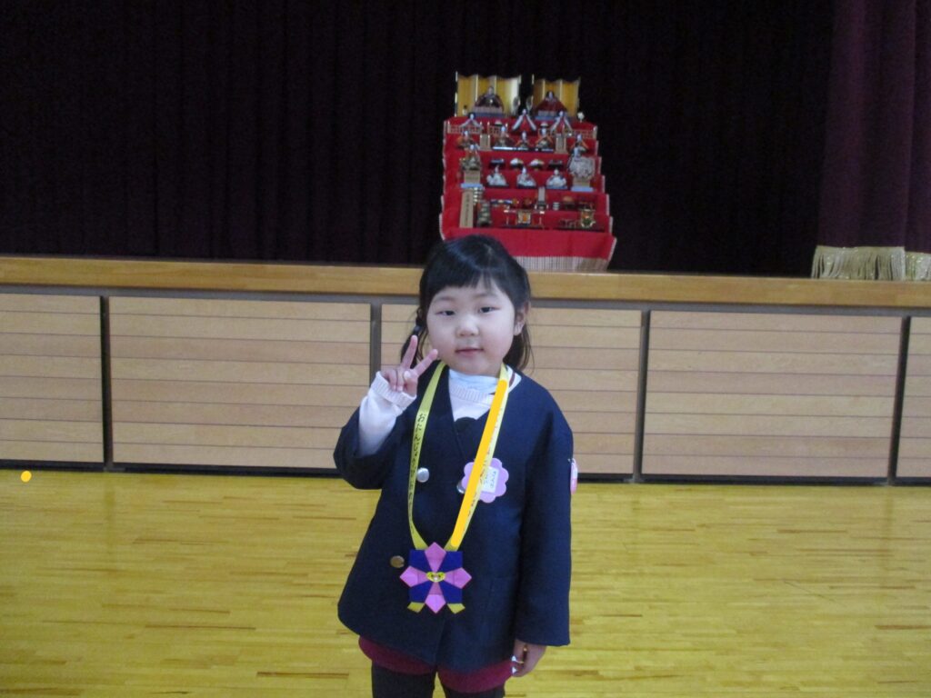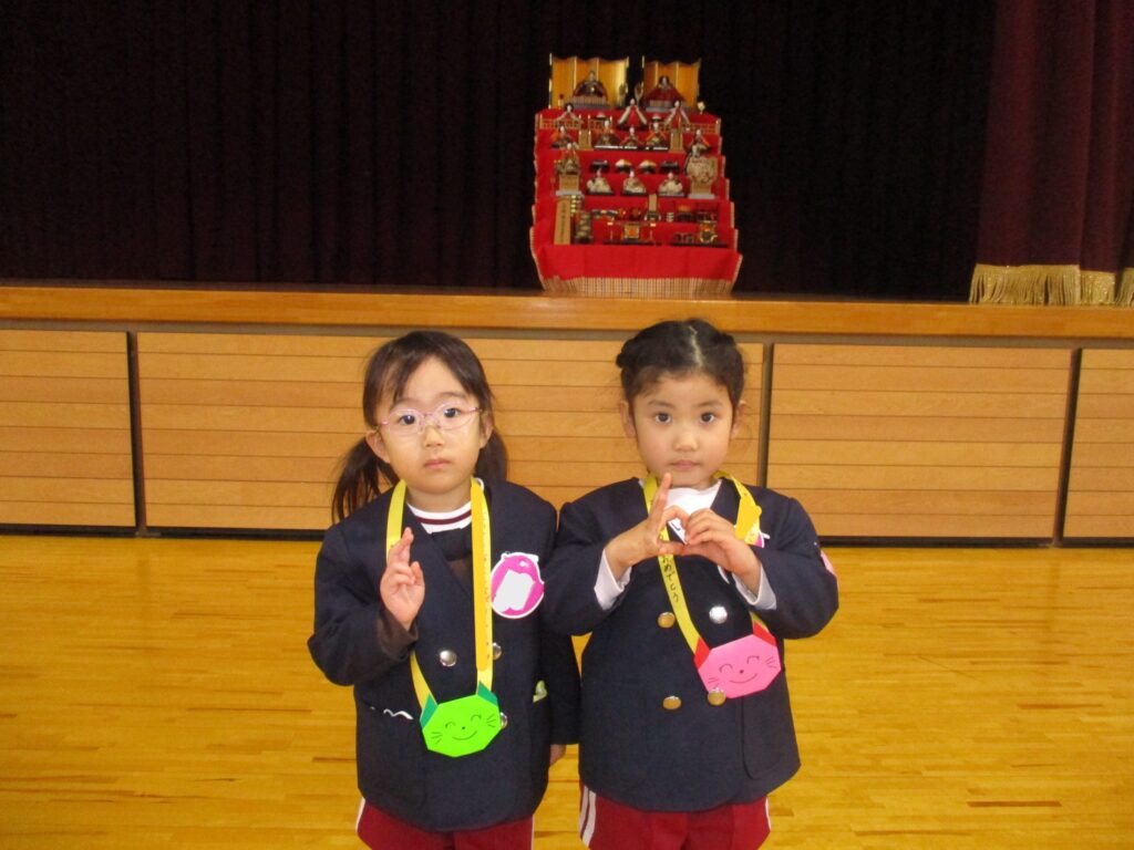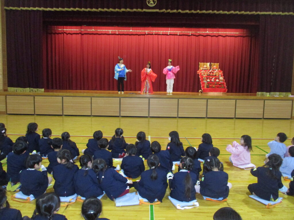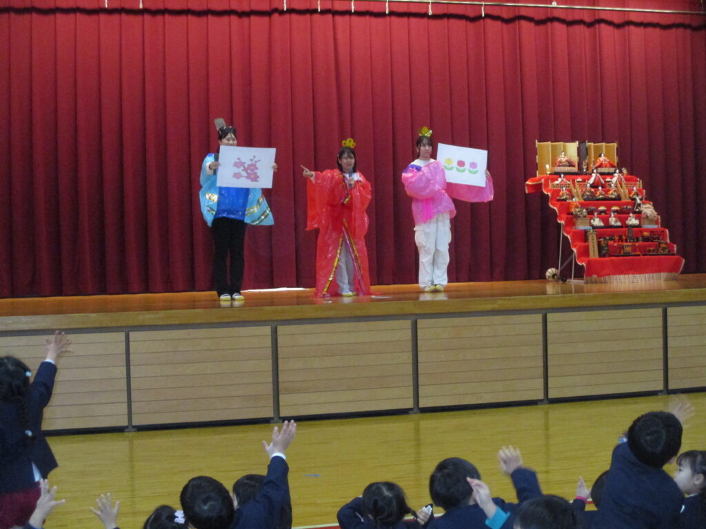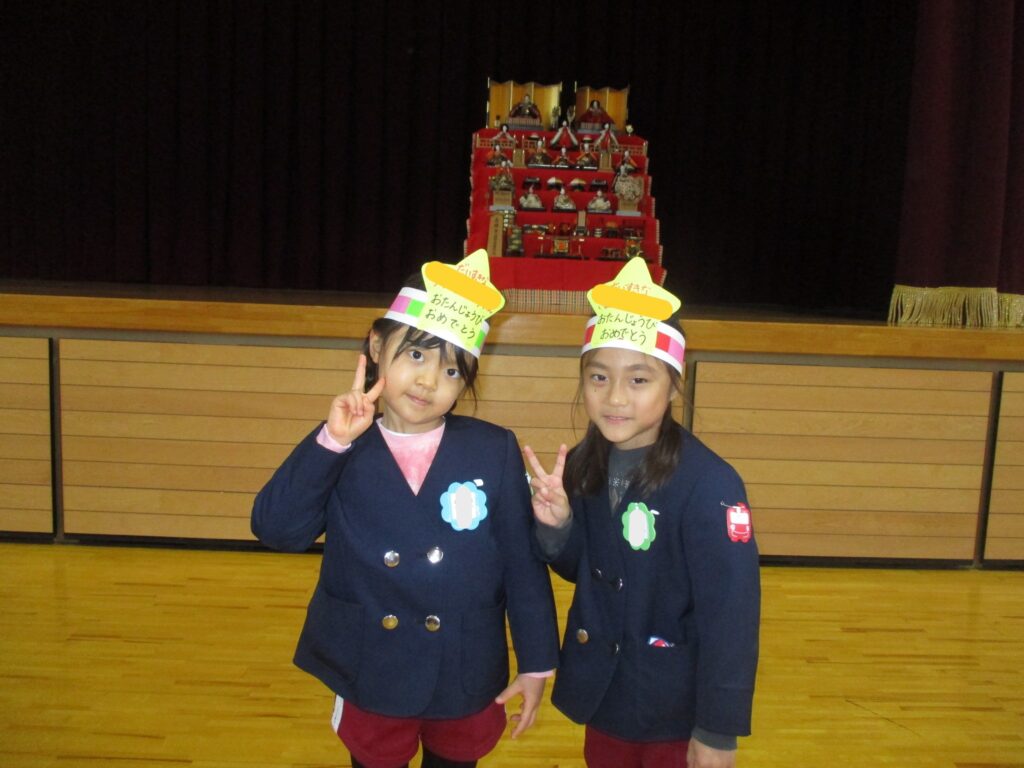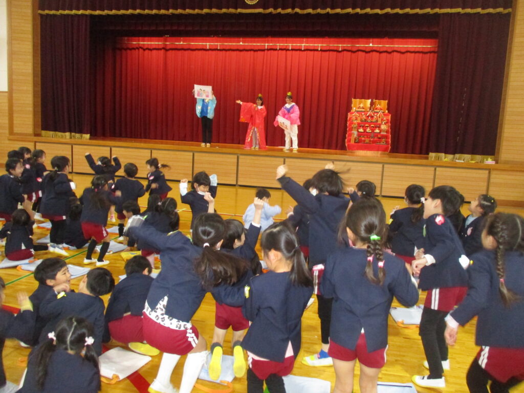 4月から始まったお誕生会、やっと3月生まれのお友だちのお祝いの日がやってきました‼️体育館に集まり、先生から手づくりプレゼントを頂き、みんなからは言葉のプレゼントを頂きました。ひなまつりの今日、3月生まれさんはみんな女の子でした🎎誕生会の後はひな人形に変身した先生方によるダンスやクイズを楽しみました。最後はみんなでひなまつりの歌をうたいました🎵今日の給食はひなまつりメニューです。白酒に見立てたカルピスもあります。